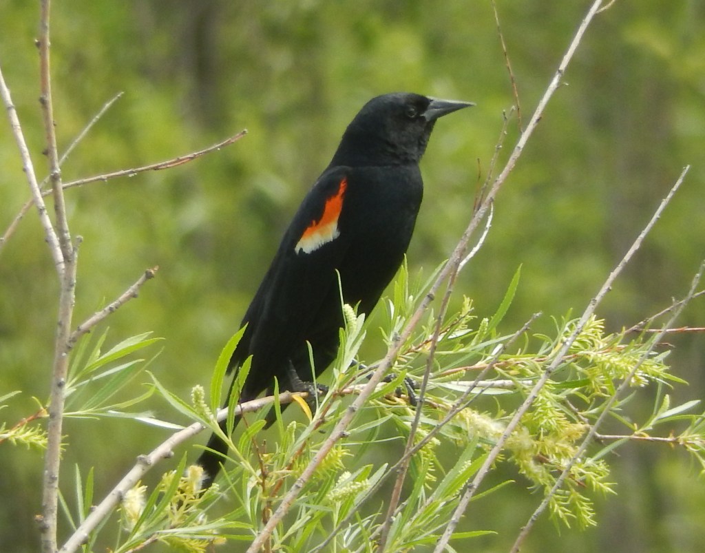 I was out for a walk when I saw this black bird. I had to walk around to the side of him in order to see his red wings–a delight to see God’s handiwork.