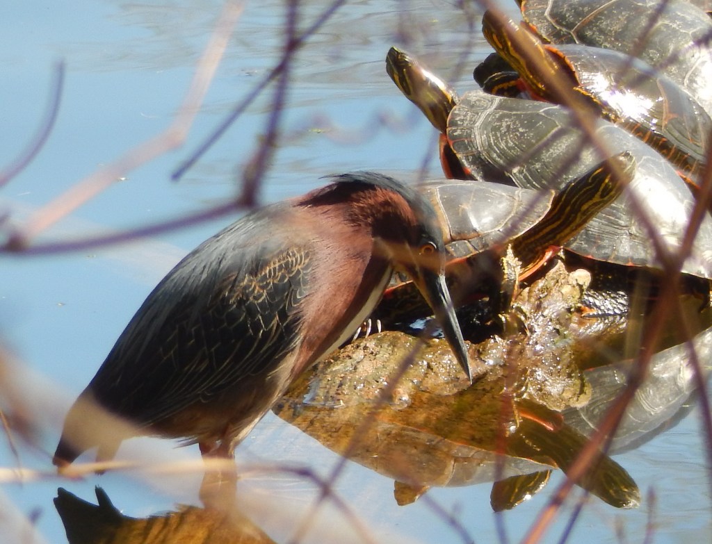 There are a few of these on a lake nearby my place. It looks a little like a Great Cormorant but not quite. I finally found it in Wikipedia. It’s definitely a Green Heron.