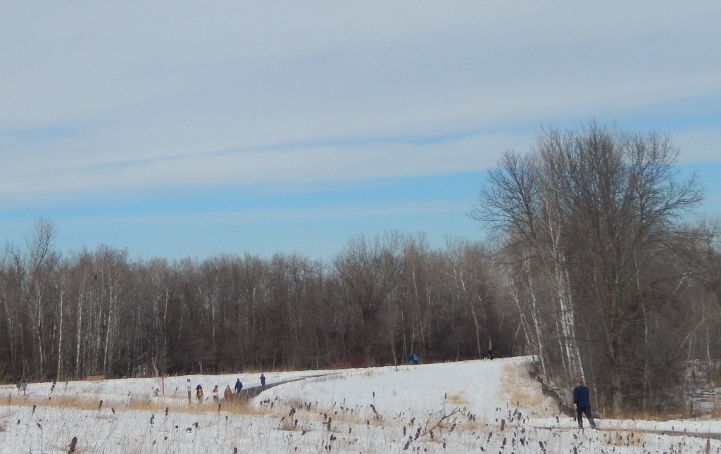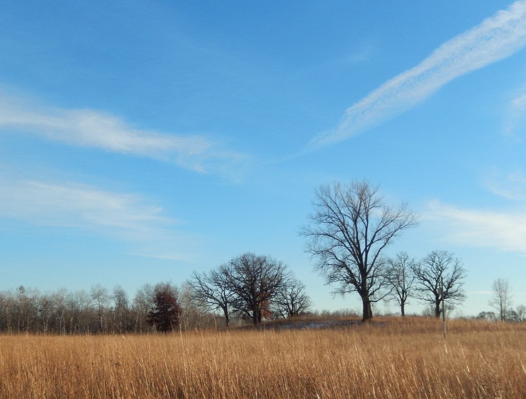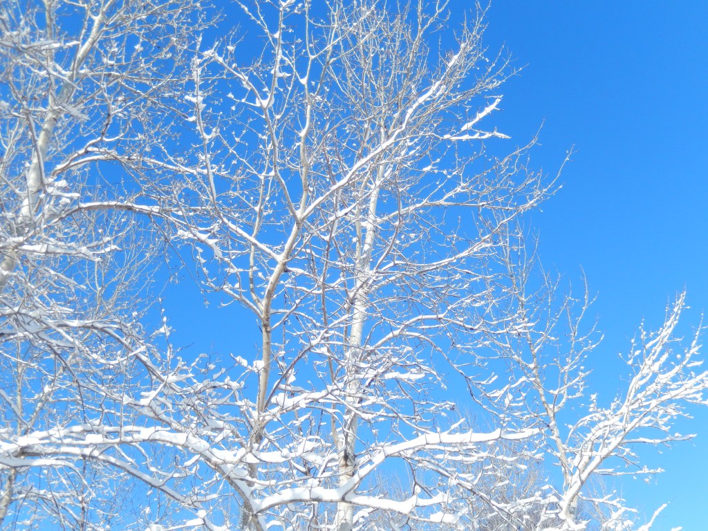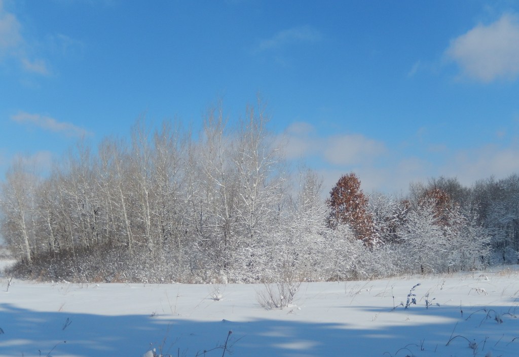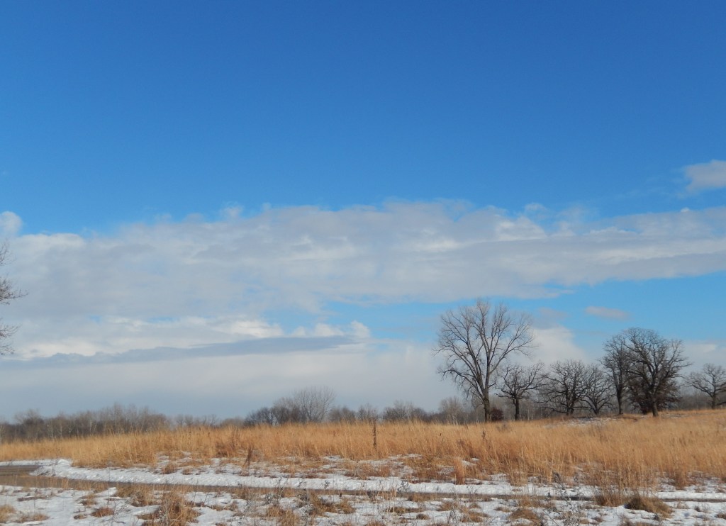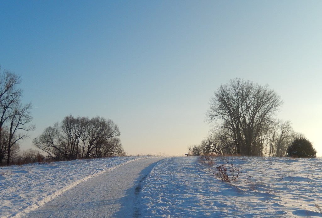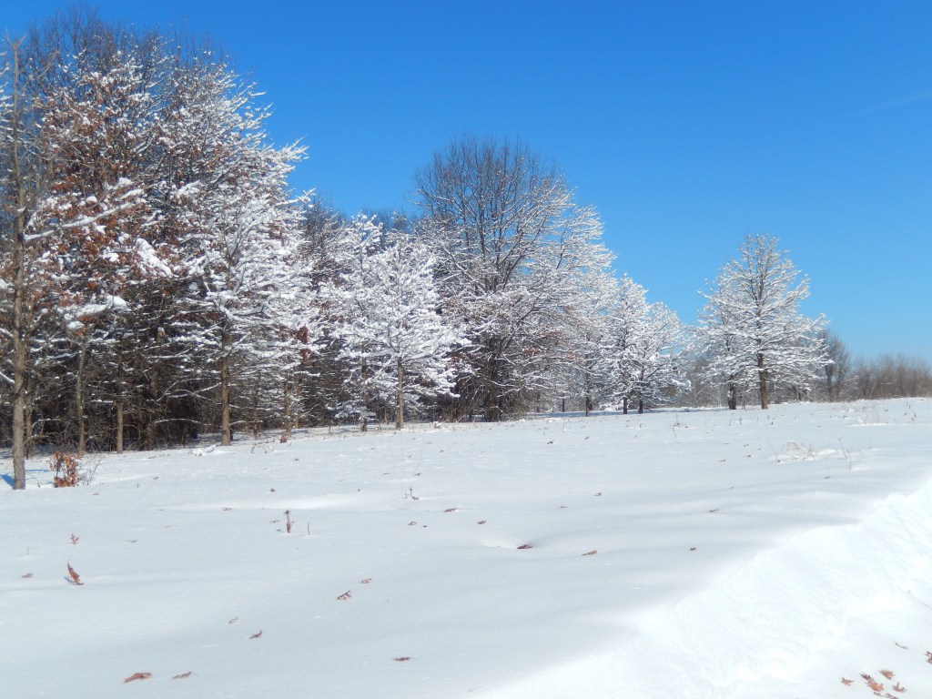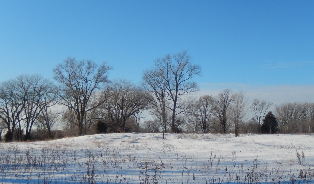 A Sunday afternoon walk takes me first to this snowy field. I look toward the east at the bright snow and the beautiful blue sky.