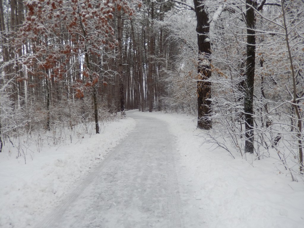 Here is a narrow path leading out to the creek. The path is barely visible because of all the snow, yet it beckons us forward.